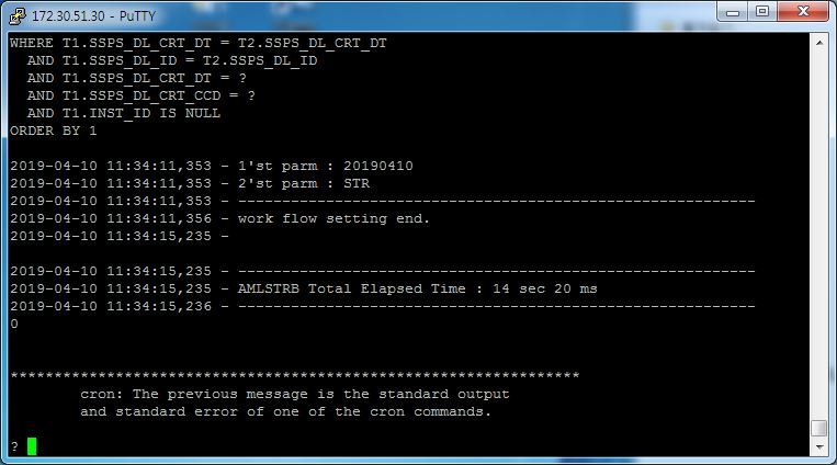 - crontab을 실행하는 user의 참조하는 PATH가 컴파일버전보다 낮다면, sh을 실행시킬 때 PATH를 재지정 해줬음