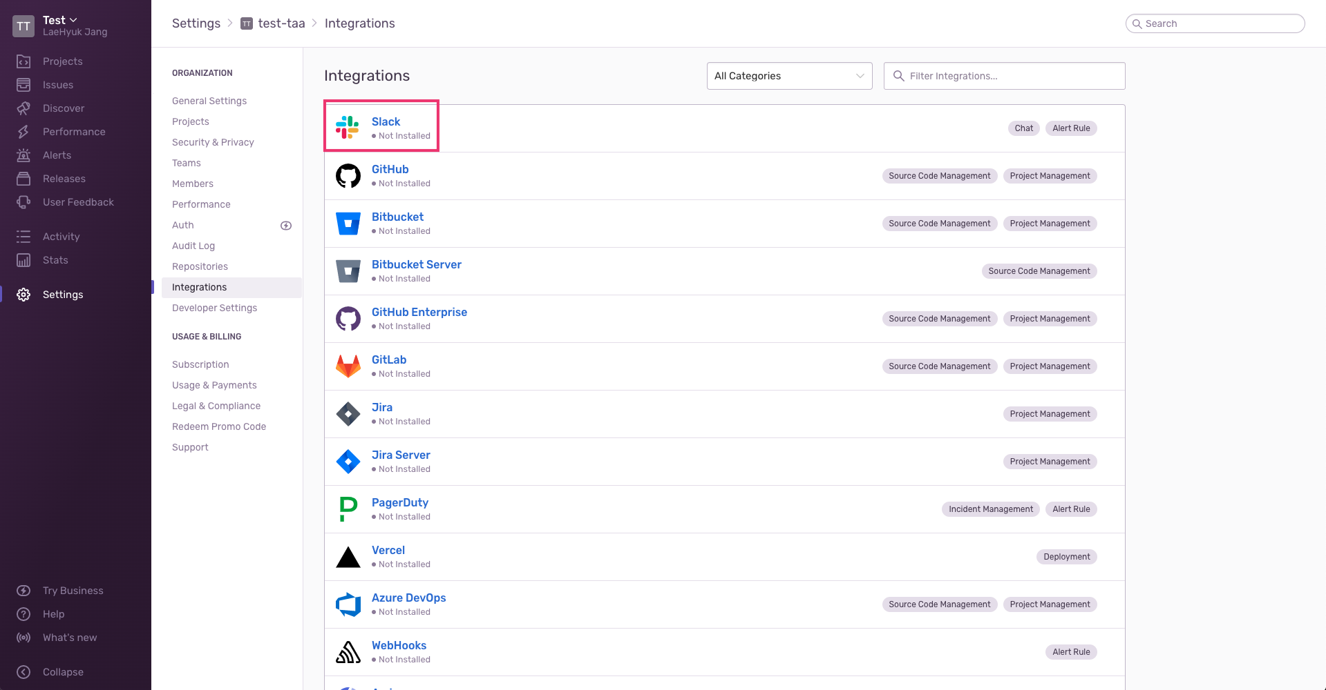 Sentry + Slack Integrations 설정하기